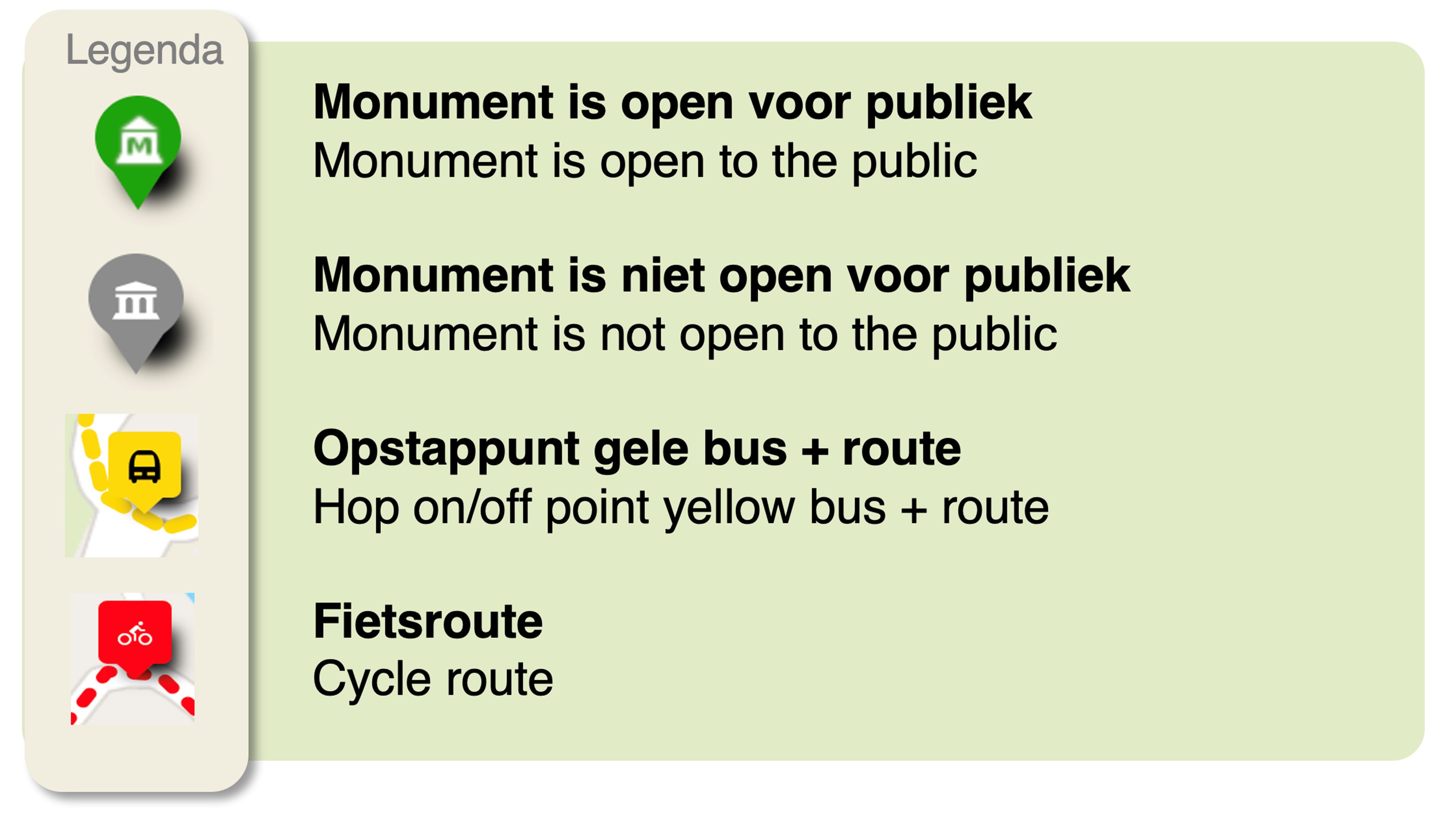 - Details about monuments, Yellow Bus, guided tours, etc.: click on the flags on the tiles on the “Monuments and activities” page.